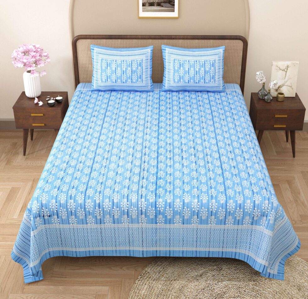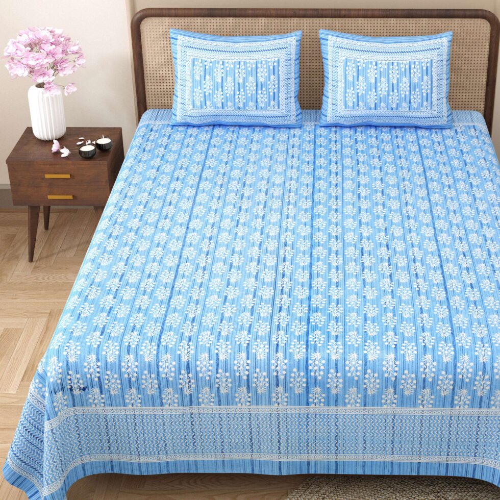 100% Pure Cotton Traditional Printed Bedsheet for Double Bed King Size Bedsheet with 2 Pillow Covers