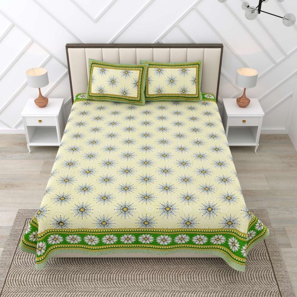 100% Pure Cotton Traditional Printed Bedsheet for Double Bed King Size Bedsheet with 2 Pillow Covers