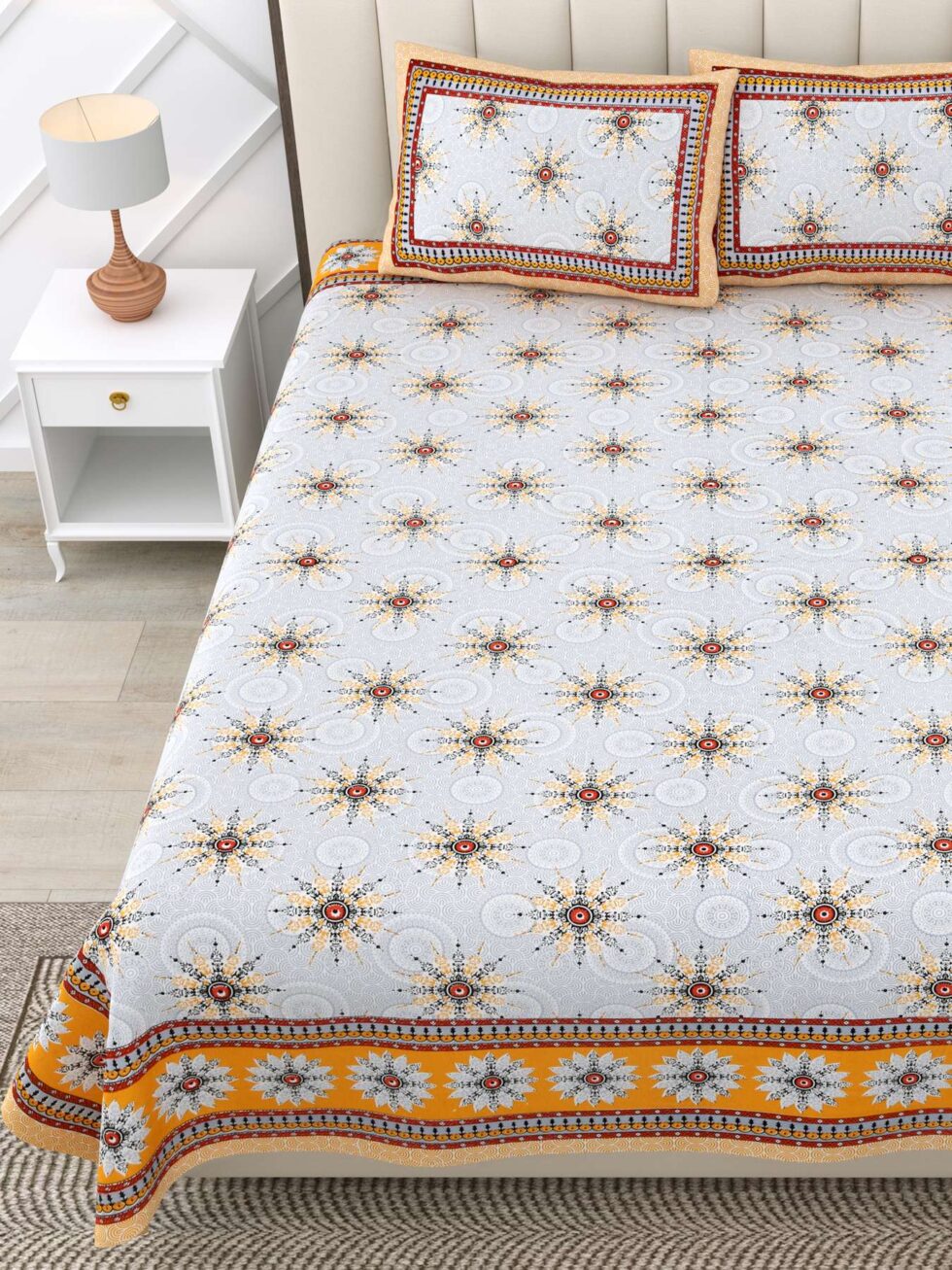 100% Pure Cotton Traditional Printed Bedsheet for Double Bed King Size Bedsheet with 2 Pillow Covers