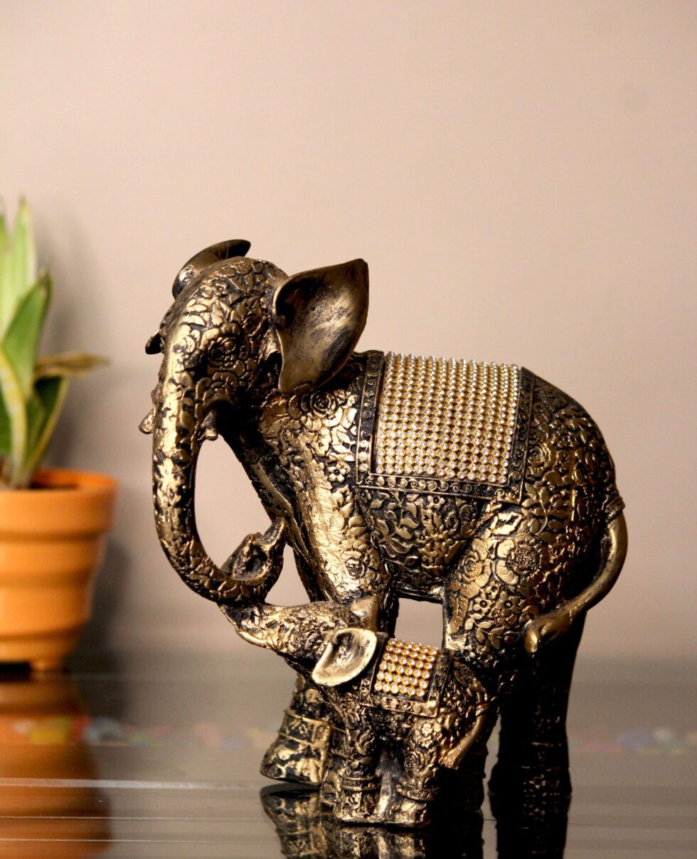 ATTRACTIVE ELEPHANT : This Elephant is designed with utmost precision to add elegance to your drawing room. Perfect Size will amplify your living room ambience. This Table dcor is thoughtfully designed to stand out and add cute look to your vicinity… PERFECT FOR HOME DCOR : Modern Resin abstract art sculpture decoration is not only a home decoration. Statue is perfect for office decoration, Fengshui decoration, chakra dcor, crystal decor, office decor sculpture, room decor, decorative for desk decorations, shelf decoration, office table decor, cabin decor etc…. “Perfect Gift : It is a Best Gift for Marriage Anniversary , Parents , Mothers day , Wedding Return Gift , Wedding And Engagement, Thanksgiving, Women’s Day , Retirement , Birthday , House warming , Office / Shop Inauguration , Festive occasions – Like Diwali , Grha pravesh and Corporate Gifts. A perfect showpiece figurines for Home & Office Decor. ” Material : Quality Made from premium quality polyresin by our Indian experience artisan chosen across the country Design Eye Catching Sculpture is designed in way to catch your guest attraction Royal Touch You can feel the positive vibrations in one touch….